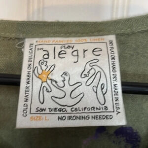 Vintage Play Alegre Hand Painted Green 100% Linen Dress Large (L)