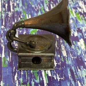 Vintage Play Me Pencil Sharpener Miniature Antique PHONOGRAPH RECORD PLAYER. Good vintage pre-owned condition. Shows slight signs of aging (see photos). You will receive the item in photos. Please examine all photos. Sold AS-IS.