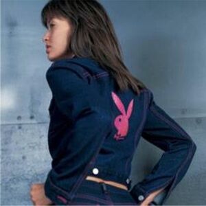 Vintage Playboy Bunny Denim Jacket Pink Glittery Bunny Logo Women's M