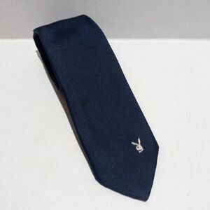Vintage Playboy Narrow Neck Tie-Embroidered Bunny-Navy-Silk Blend-Made In Italy