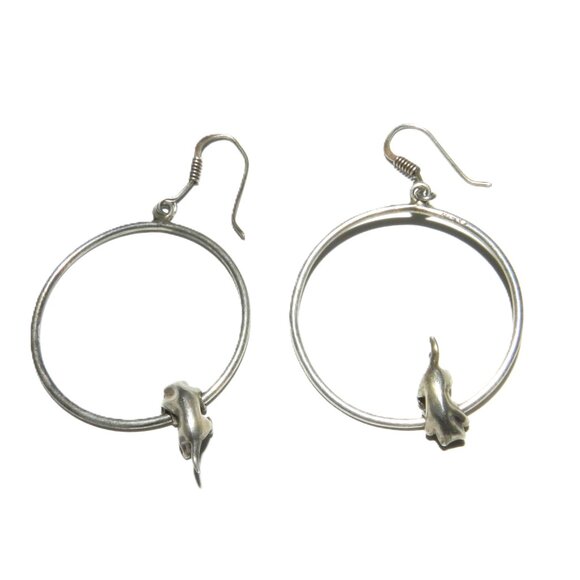 Vintage sterling silver dangle earrings in the shape of kittens, with a small cat or kitten charm hanging from a sterling silver hoop. This design is a very popular handcrafted item. The earrings and charm are made of sterling silver (925 purity).