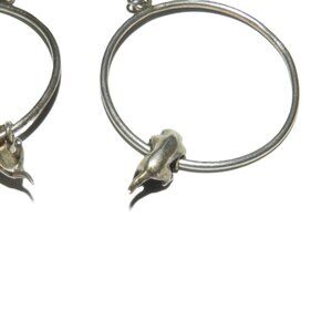 Design: The small charm is attached to a simple, standard-sized silver hoop, allowing it to move and dangle freely.