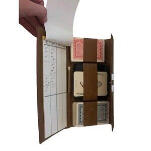 Delve into the nostalgia of classic gaming with these Vintage Playing Cards, steeped in the rich tradition of American craftsmanship. Housed in a convenient case alongside coasters, this set is not just a game but a collectible that evokes the spirit of travel and companionship, perfect for card enthusiasts and collectors alike.