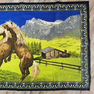 vintage wall tapestry of 2 horses playing in a Meador or field by A.T.C.