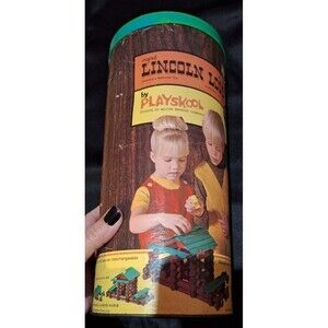 Vintage Playskool Lincoln Logs Cannister 1969 Incomplete Set