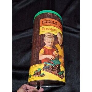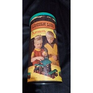 Vintage Playskool Lincoln Logs Cannister Incomplete Set