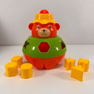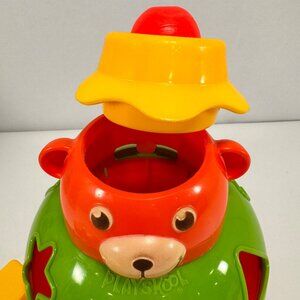 Vintage Playskool Teddy Bear Shape Sorter 6 Blocks Hat Squeaker