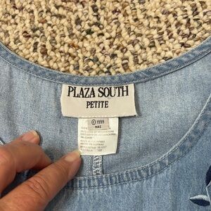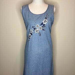 Vintage Plaza South Embroidered Long Blue Denim Dress. 1999. 10 Petite. Y2K