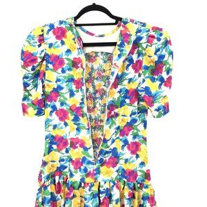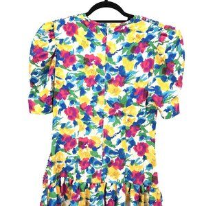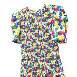 Vintage Plaza South Floral Puff Sleeve Smocked Drop Waist Midi Dress Size 8
