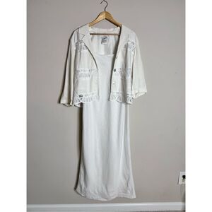 Vintage Plaza south white linen blend midi dress and cardigan sz 12