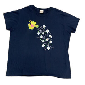 Vintage Pleasant Shade Navy Watering Can Daisy Glitter SS T-Shirt Size XL