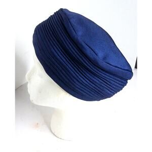Vintage Pleated Blue Pillbox Turban Hat
