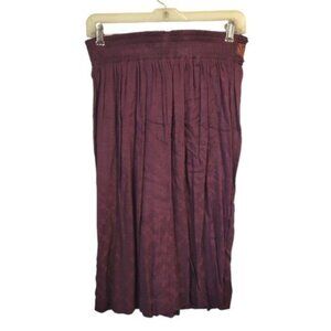 Vintage Pleated Midi Skirt Purple Elastic Waist Back