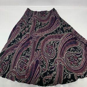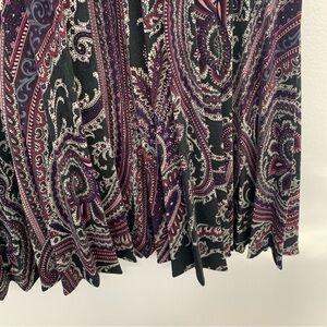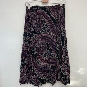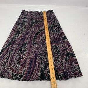 Vintage Pleated Midi Skirt Medium Elastic Waist Purple Black Geometric Boho