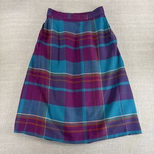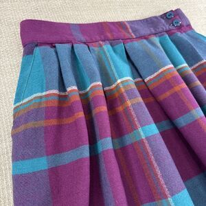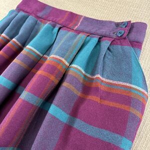 Vintage Pleated Plaid Wool Midi Skirt Purple Teal Pink Lined Fall Winter Skirt