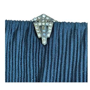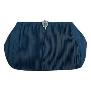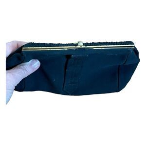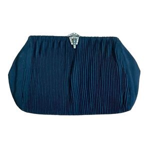 Vintage Pleated Satin Evening Bag Black Jeweled Gold Tone Metal Clasp Clutch