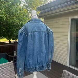 Vintage Pleated Shoulder Denim Jacket (Fits M) Classic washed denim jacket with