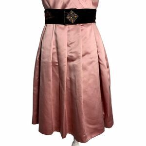 Vintage Pleated Sleeveless Mini Dress 4 Pink Velvet Belt Lined Spaghetti Straps