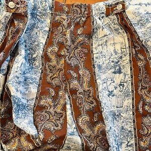 Vintage Pleetway Balloon Seat Pajama Brown Paisley Blue Toile Set Size C Large