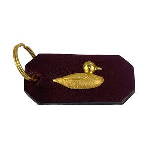 This vintage keychain, crafted from rich plum leather, features a charming gold duck accent. It's an elegant accessory for organizing keys and adding a touch of nostalgia. The gold ring complements the duck design, providing both functionality and style. Ideal for collectors and those who appreciate unique, artisanal items.