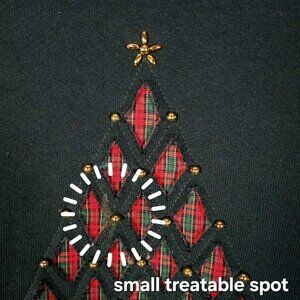 Pre-owned condition, has a small treatable spot on the Christmas tree design. No major flaws or defects.