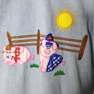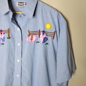 Vintage Plus 24W Pig, Farm Scene Embroidered Button Shirt Separate Issue Country