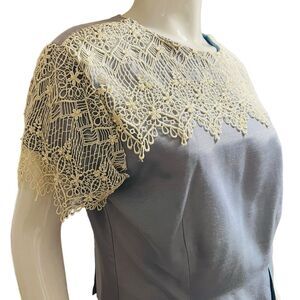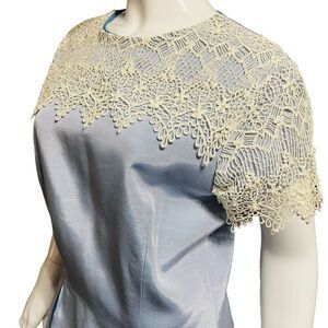 Vintage Plus Size 2 piece Blue Set Skirt & Top Midi/Lace & Pearls size 14-16