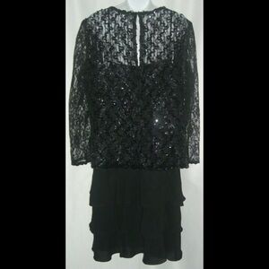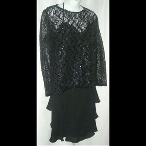 Vintage Plus Size Lori Max Dress Black Tier Flamenco Sheer Sequin Lace Flapper