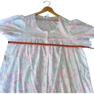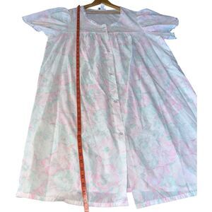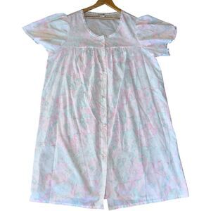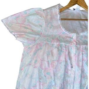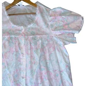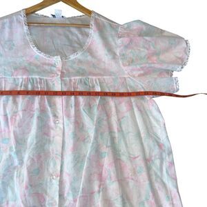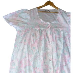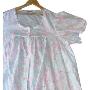 Vintage Plus Size Nightgown Lace Trim Floral Print Button Up Short Sleeve Granny