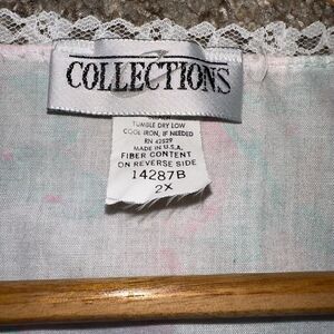 Vintage Plus Size Nightgown 2XL Lace Trim Floral Button Up Short Sleeve Granny