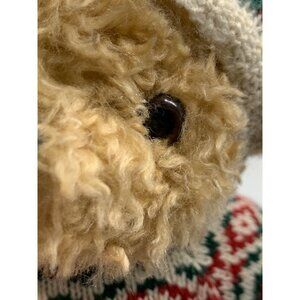 A charming vintage teddy bear with soft polyester fur, festive knit sweater, and matching hat. Ideal for collectors or as a nostalgic gift.