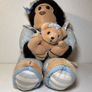 Vintage Plush Creations Chimp With Teddy Bear Blue PJs & Slippers 1993 Monkey