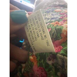 Vintage Plush Creations Inc. 1992 Cat Doll In Floral pajamas With Mouse Slippers