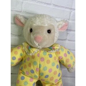 Vintage Plush Creations Lamb Sheep With Slippers Plush Stuffed Animal Polka Dots. Will come exactly as shown! There are some cosmetic flaws noted in photos! SOLD AS IS! Measurements laying flat are included in photos. Please refer to all photos. Ask any questions prior to purchasing! Thanks!