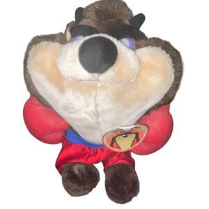 Vintage 1998 Tazmanian Devil Plush Warner Brothers Special Effects Boxing Glove Red Blue 11" with Product Hang Tag Nursery Bedroom Decor, Baby Shower Gift, Animal Wildlife Nature Nostalgia Theme