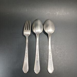 Add a touch of vintage elegance to your table setting with this Plymouyh Silverplate flatware set! This set includes 1 dinner fork and 2 tablespoons. All are marked with the Plymouth Silverplate hallmark on the rear side of the handle. This set features the lovely Jewel Rose floral pattern. These are perfect as replacement utensils.