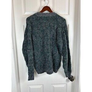 Vintage Point Zero Mens Gray Green Cardigan M Grandpa Comfort Chunky Knit R3