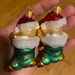Vintage Poland MOUTH BLOWN HAND-PAINTED CHRISTMAS CAT Stocking ORNAMENTS - 2