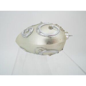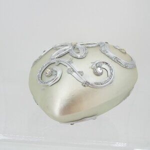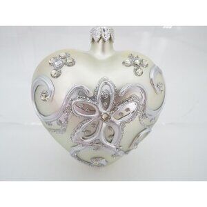 Vintage Poland Mouth Blown Hand Painted Silver Heart Ornament with Original Box