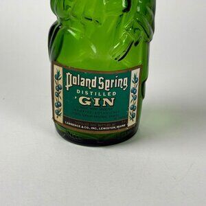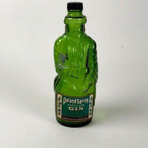 Step back in time with this incredible vintage Poland Spring Distilled Gin glass bottle, shaped uniquely as a sailor. Its rich green hue paired with the intricately embossed design offers a striking display of craftsmanship from an era gone by. Complete with its original label, this piece embodies both function and artistry, having held premium gin distilled by Lawrence & Co., Lewiston, Maine. The bottle’s design whispers maritime tales and original charm, amplified by its federal embossing prohibiting reuse. Its distinct 4/5 Quart size and bold presence make it a fascinating addition to barware collections, nautical themes, or vintage displays that long to recreate stories of wanderlust and spirited evenings. A showcase piece that captures timeless allure!