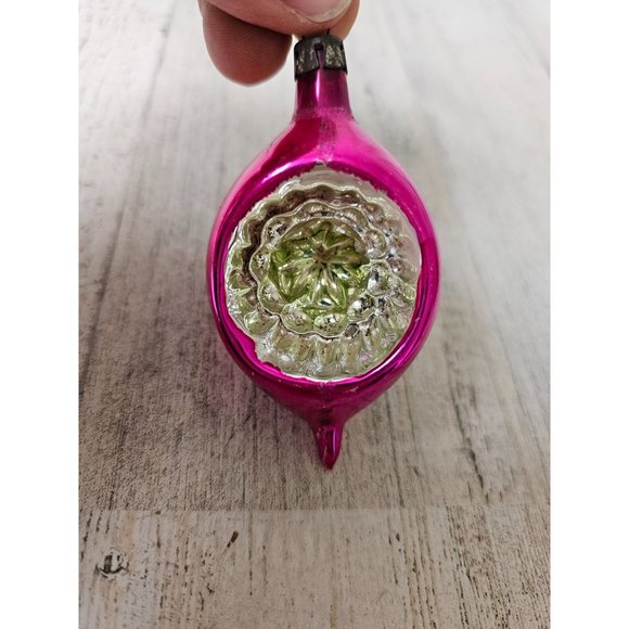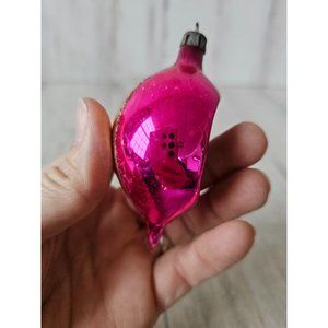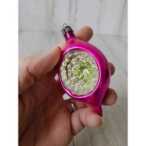 Vintage Poland indent reflector pink mini ornament glass Xmas glitter tree