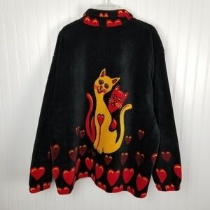 Vintage Polar Magic Fleece Jacket Black Novelty Y2K Canada Cats Hearts Size XL