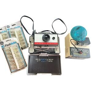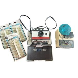 Polaroid Land Camera & Flash Automatic 220 Vintage Rare. Included 3 boxes (36 bulbs) of GE M3 flash bulbs. Very old. Has not been tested. Being sold as is. Thanks for looking!