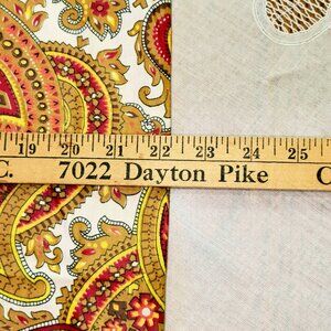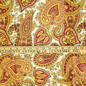 Vintage Polished Cotton Golden Paisley Fabric With Red & Yellow Accents 70L x 45