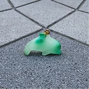 Vintage Polished Jadeite Etched Dolphin Pendant Charm