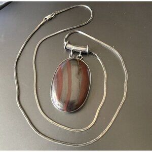 Beautiful unusual vintage oval polished Jaspelite pendant and a 925 sterling silver 24” chain made in Italy.