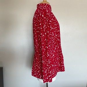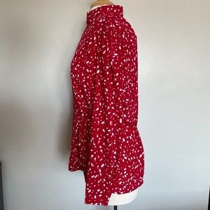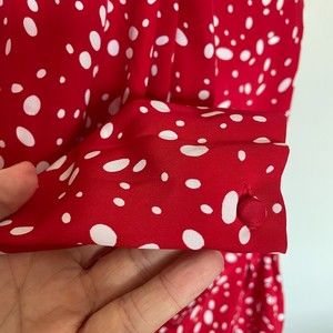 Vintage Polka Dot Peplum Silky Long Sleeve Button Down Blouse S/M