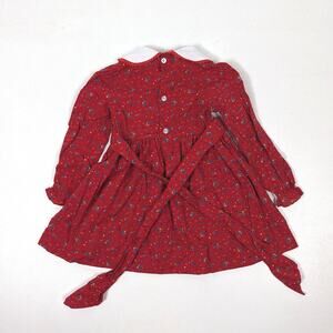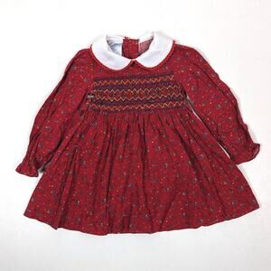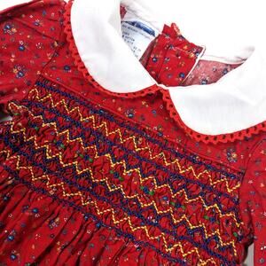 Vintage Polly Flinders Dress Girls Size 2T Red Floral Calico Smocked Holiday