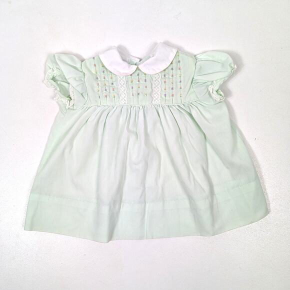Vintage Polly Flinders Dress Girls Size 9m Mint Green Smocked Pastel Spring