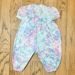 Vintage Polly Flinders Floral Bubble Bottom Babygirl Onepiece Romper 18 Months